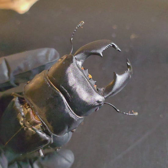 Celebrated for its robust mandibles, broad thorax, and glossy black exoskeleton, this beetle stands out for both its striking appearance and superior bloodline among collectors.